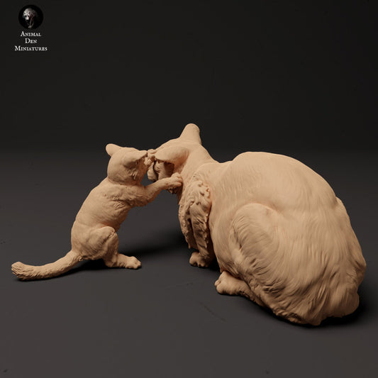 Schottische Wildkatze spielend mit Jungtier: Tiere aus Nordeuropa (Ref 24_01_06)