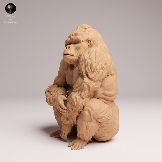 Socha zvířete z džungle: sedící východní nížinný gorila – stříbrný hřbet (Ref 25_07_06)