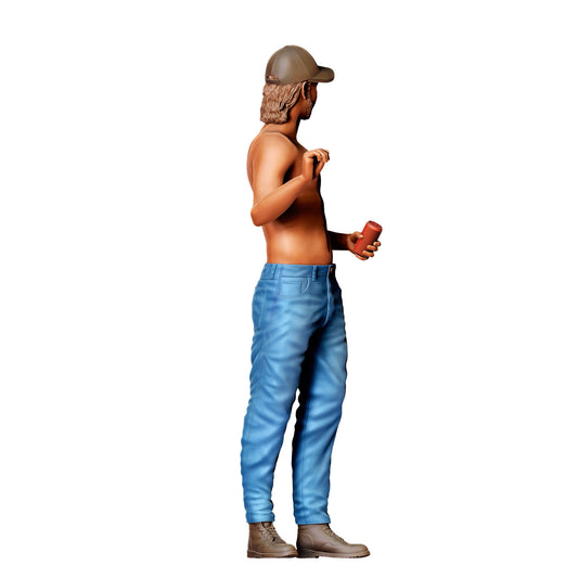 Muž bez trička s kšiltovkou – figurka s nápojem v ruce (č. ref. 439)