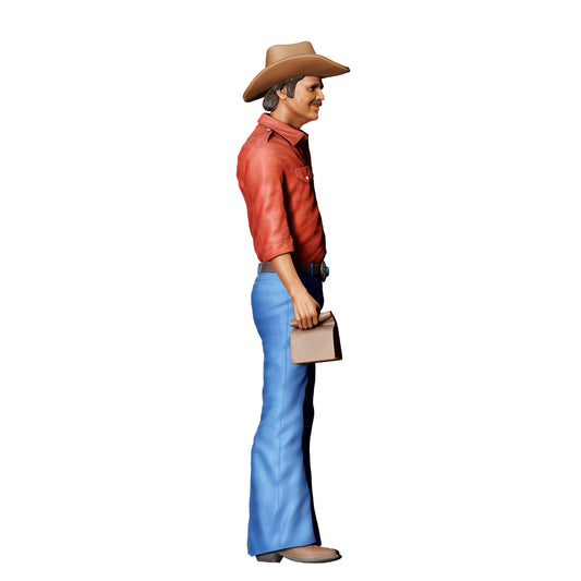 Kovboj s kloboukem a taškou – stojící figura v westernovém oblečení (Ref. č. 399)
