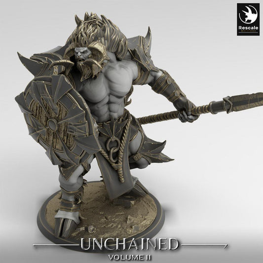 Fantasy Figur: Minotauren-Wächter, Speerträger mit Rundschild, Bestienkrieger - Minotaur Guard (24_05_G2)