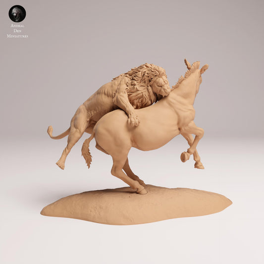 Άγριο ζώο φιγούρα: Λιοντάρι κυνηγάει ζέβρα – Ζώα της σαβάνας (Ref 25_08_06)