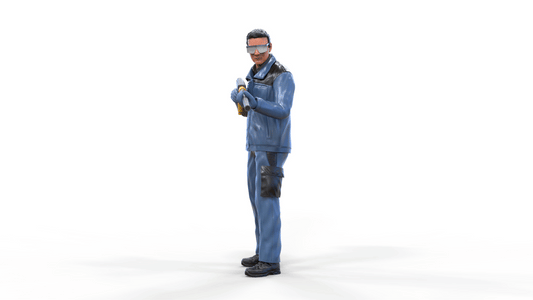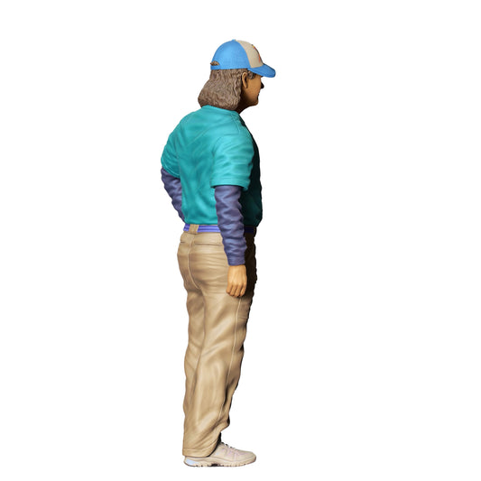 Man with a dog in his arms – figure in work clothes with a baseball cap (Ref. No. 401)