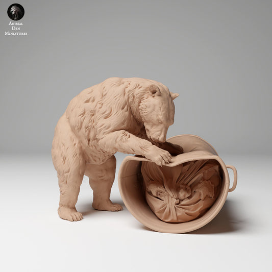 Figura di fauna selvatica: Orso nero che distrugge un bidone della spazzatura (Ref 24_11_09)