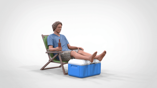 Figurka miniaturowa: Mężczyzna z piwem i lodówką w leżaku (Nr. 20)