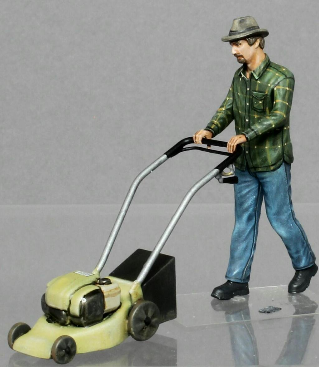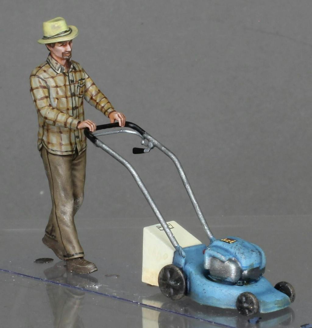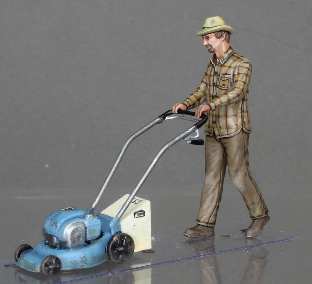 Miniatur Figur: Mann mit Rasenmäher (Nr. 58) - 1:10