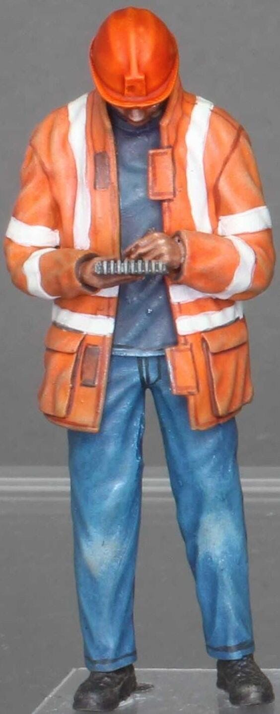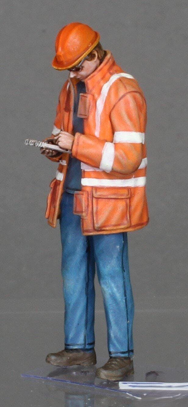 Miniatur Figur Straßenarbeiter mit Notizblock: Landvermesser auf der Baustelle (Nr. 232) - 1:10
