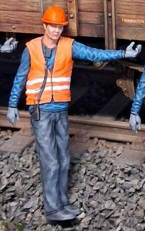 Miniatur Figur: Arbeiter am Gleis - Eisenbahner/ Bauarbeiter D (Nr. 390) - 1:10