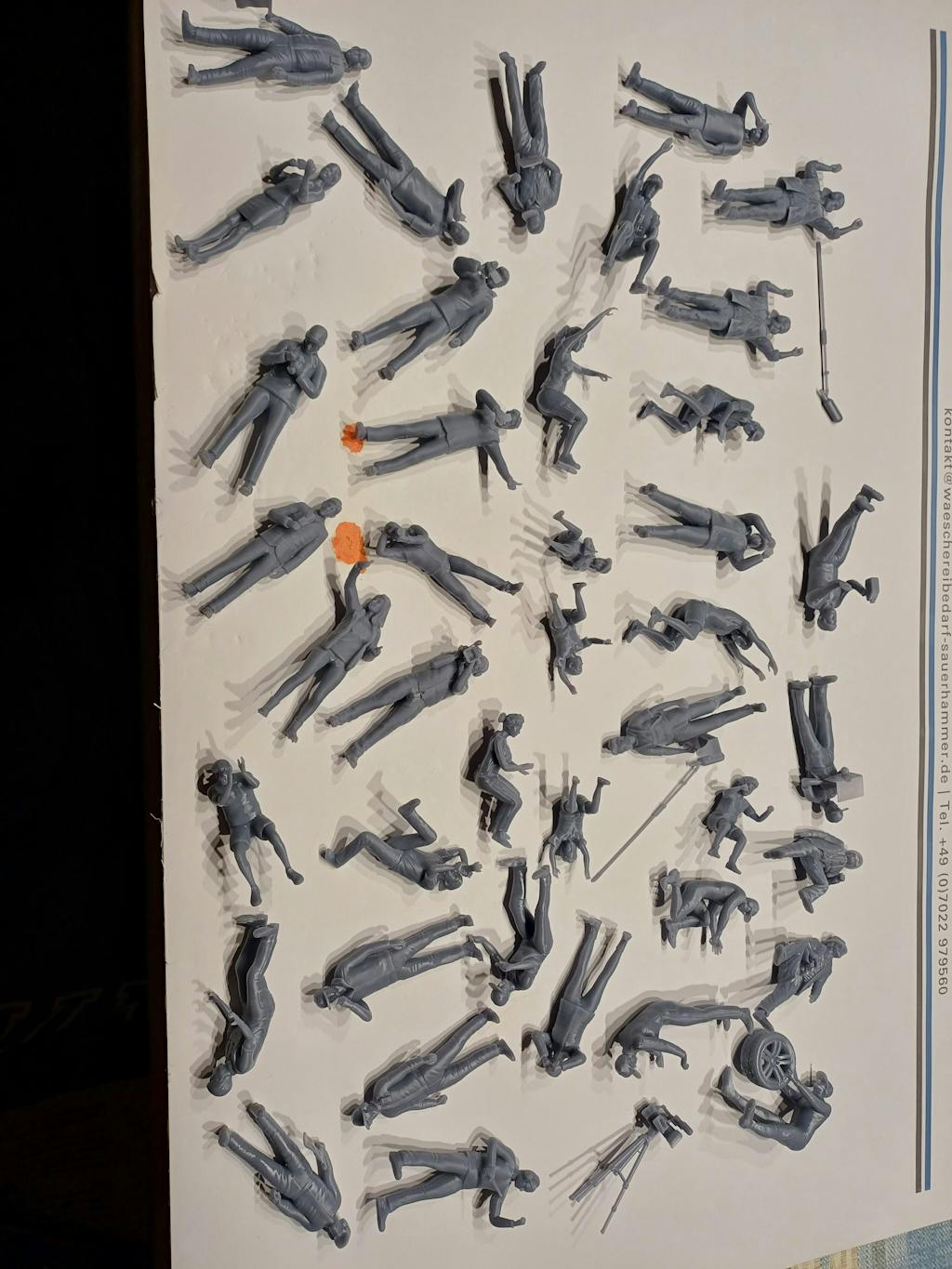 Das 3D-gedruckte Miniatur Figuren Set ist erhältlich in den Maßstäben 1:18, 1:20, 1:22,5 - Spur 2, 1:24, 1:32 - Spur 1, 1:35, 1:43, 1:50. Das Figuren Set eignet sich perfekt für Diorama- und Modellbauprojekte sowie zur Verschönerung von Slotcar Rennstrecken oder Modellbahnen.