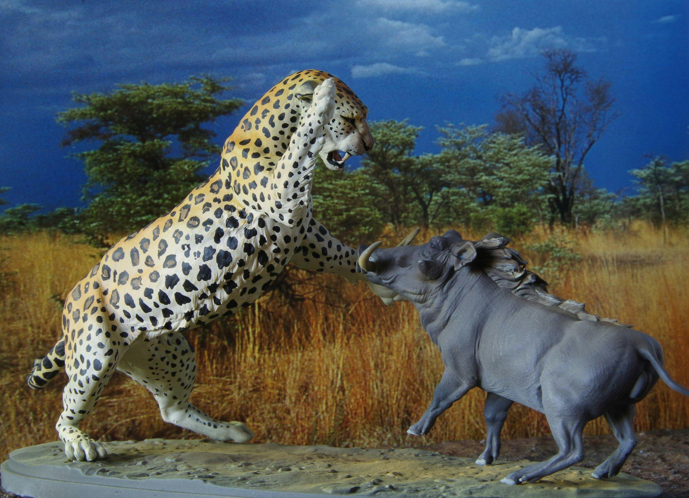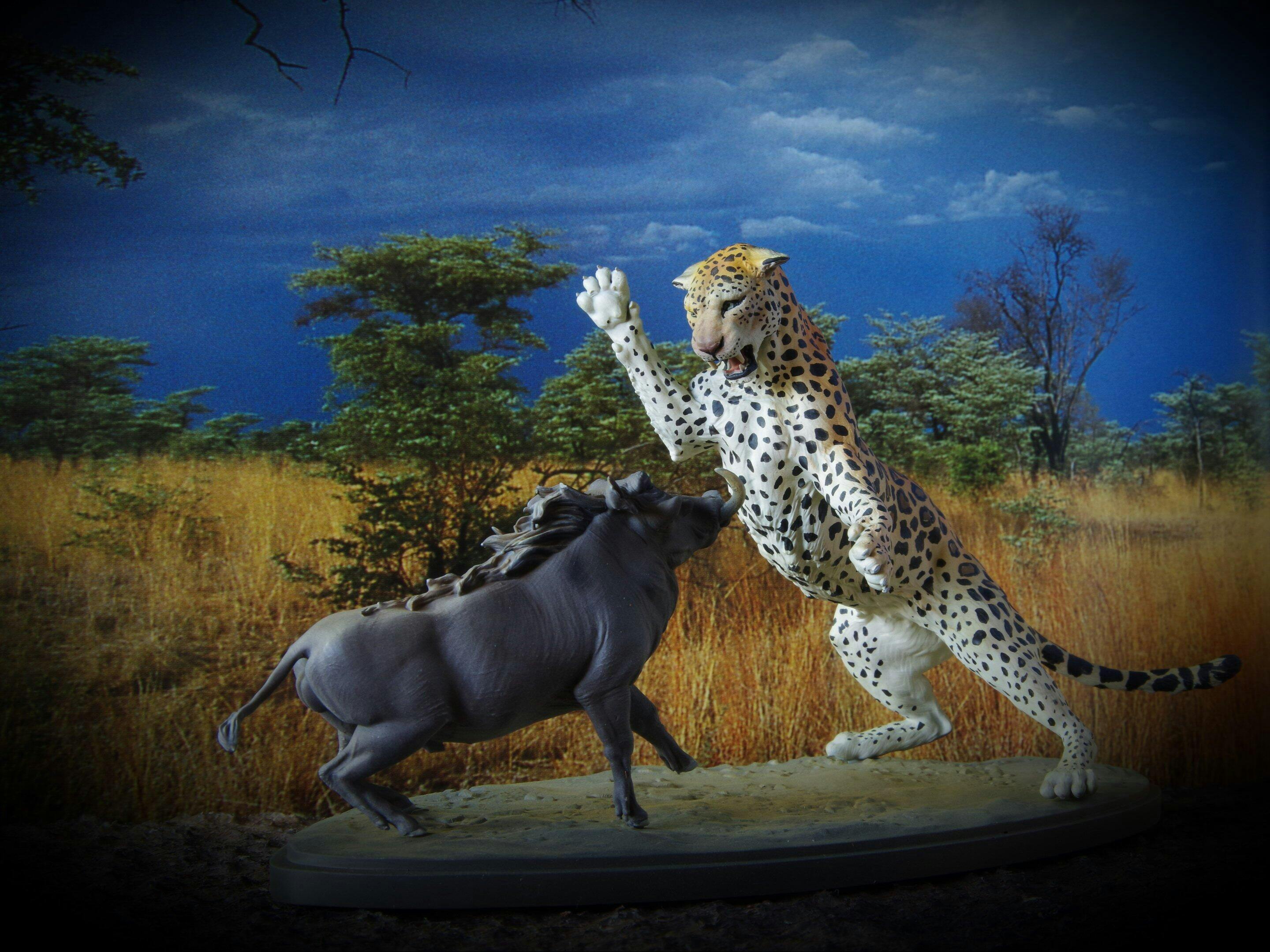 Wildtier Figur: Leopard jagt Warzenschwein – Tiere der Savanne (Ref 01_01_42)