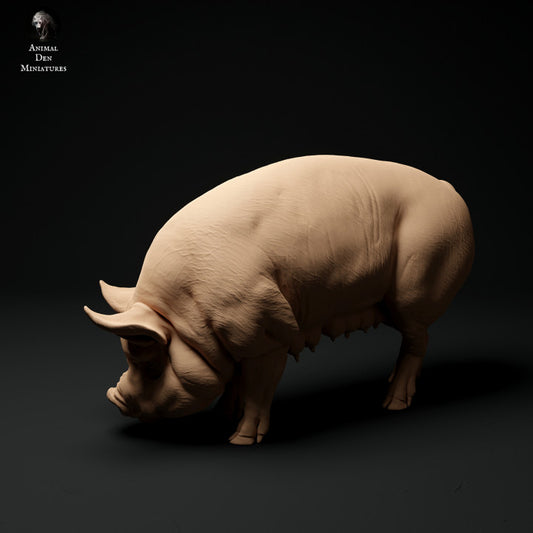 Figuras de Animais de Fazenda: Porco Pastando - Porco Berkshire