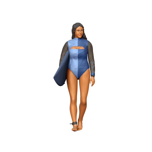 Miniatura Figura Wellenreiterin: Surfista com Prancha na Praia (Nr. 178)