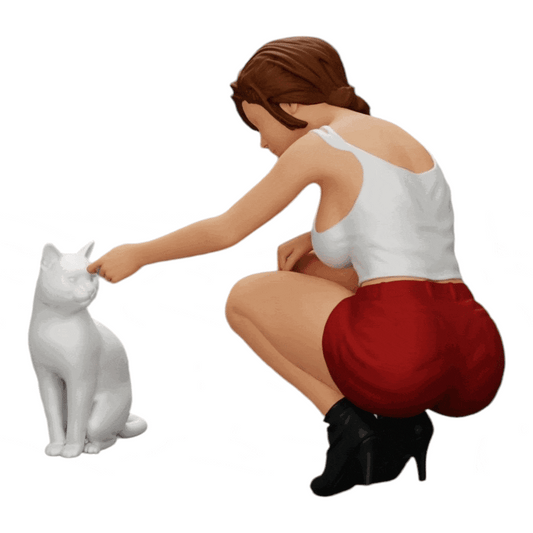 Miniatura: Menina bonita ajoelhada ao lado do seu gato (Nr. a21)