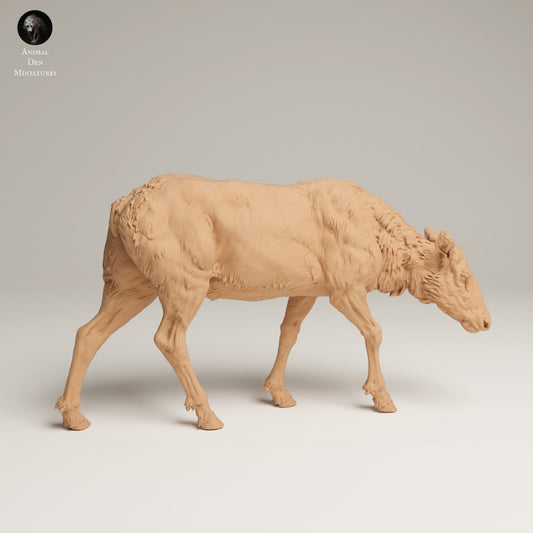 Figura de animal selvagem: vaca Wapiti das Montanhas Rochosas a comer (Ref 25_06_01)