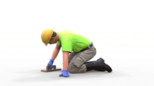 Miniatura: Trabalhador 1 - Azulejador de joelhos com capacete (nº 124)