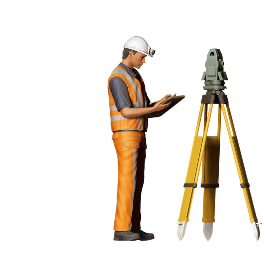 Miniatura de Figurino de Trabalhador de Estrada com Tripé: Topógrafo no Local de Construção (Nº 231)