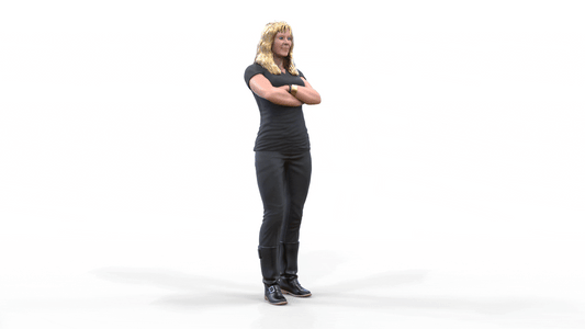 Miniatura: Mulher atraente com cabelo longo em body e colete aberto (nº a46)