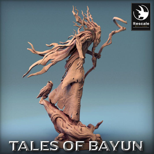 Miniatura de Tabletop: Lechy / Leshy, Druida Espírito da Floresta, Guardião do Bosque, Príncipe das Dríades com Cajado e Coruja (24_01_P)