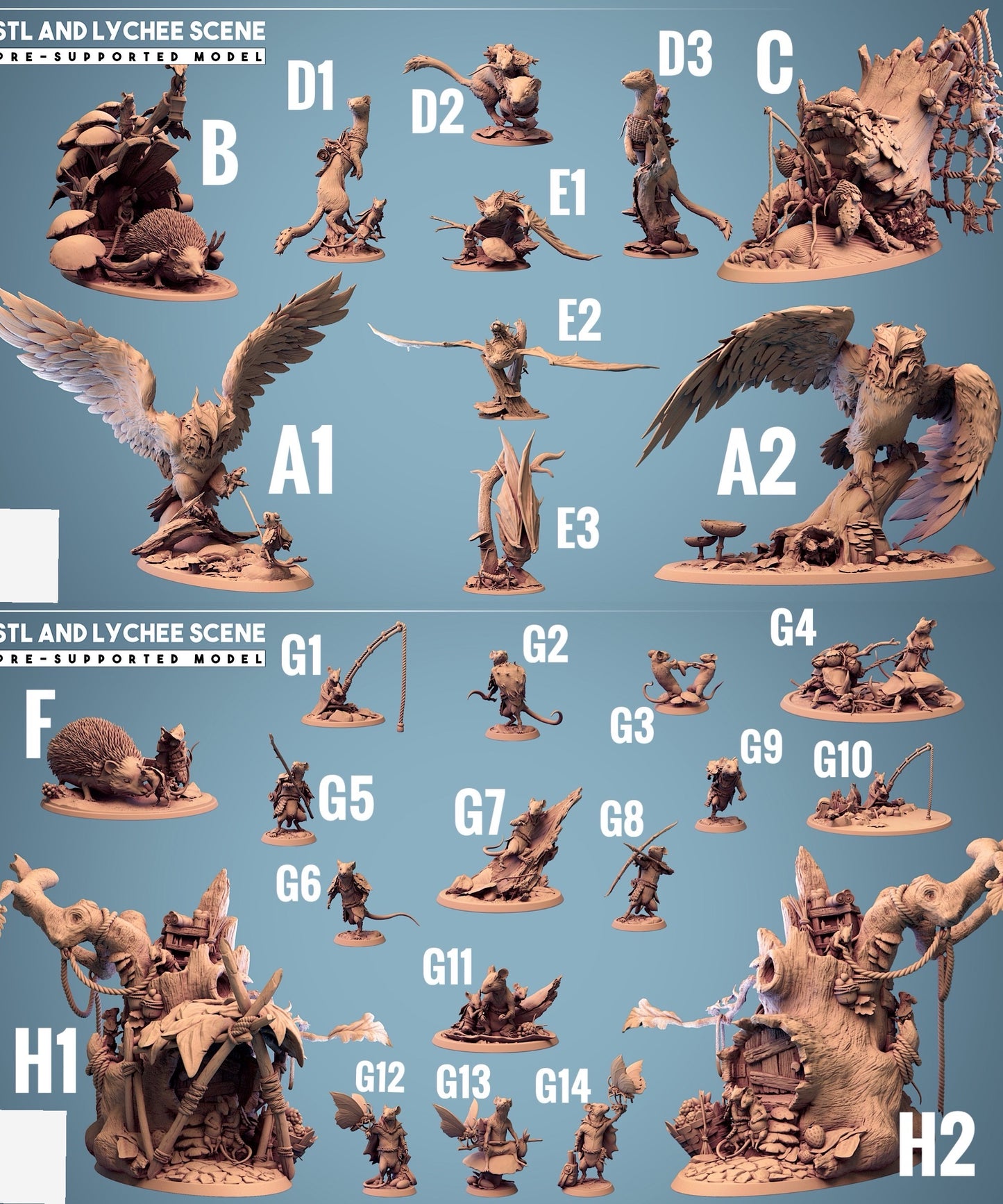 As figuras e peças de terreno oferecidas são fabricadas em Resina ou PLA. Devido ao processo de fabricação, são possíveis pequenas variações na forma e na cor.
