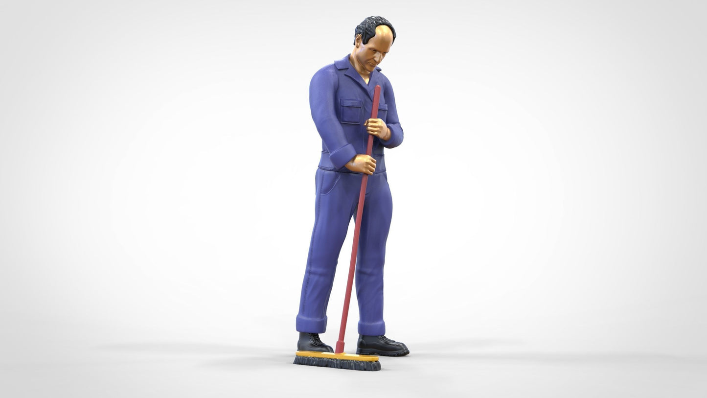 Miniatura Figur de Zelador ou Limpeza: Homem com Vassoura em Macacão (Nr. 263)